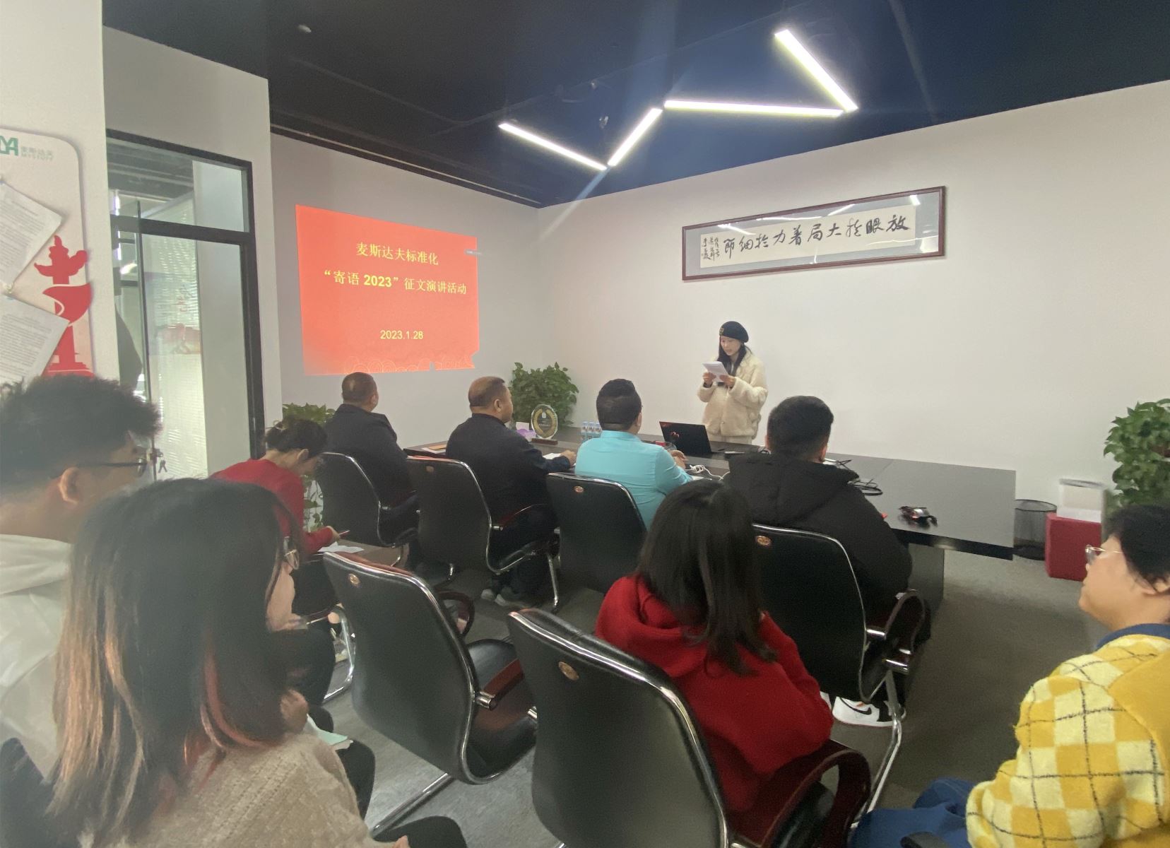 為深入學習貫徹黨的二十大精神,教育引導員工不忘初心、牢記使命,營造“創(chuàng)優(yōu)爭先,比學趕超”的文化氛圍,麥斯達夫公司黨支部舉辦了“寄語2023”主題征文活動。各部門員工紛紛踴躍投稿,由黨支部副書記、組織委員,工會副主席、團支部副書記組成評審組進行評審,并于2023年1月28日癸卯兔年首個工作日開展獲獎作品演講活動,活動以線上線下相結合的方式進行。公司黨支部書記、首席執(zhí)行官鄭波,黨建指導員郝宏強等人出席活動,活動由黨支部組織委員王釗柱主持。