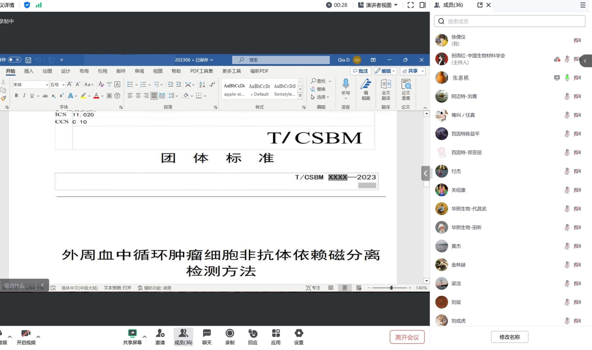 麥斯達(dá)夫標(biāo)準(zhǔn)化作為團(tuán)體標(biāo)準(zhǔn)《外周血中循環(huán)腫瘤細(xì)胞非抗體依賴磁分離檢測方法》的技術(shù)支撐單位,鄭波、張惠棋、徐倩儀參加會議。