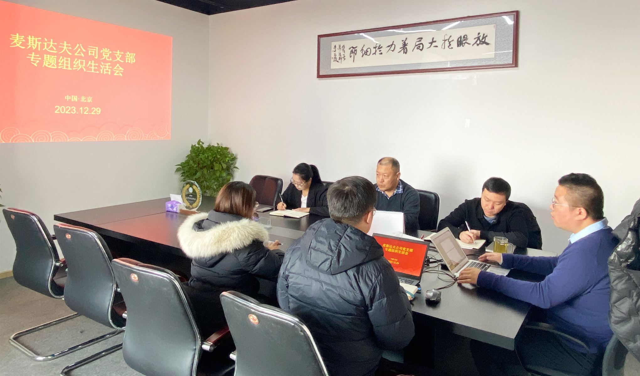根據(jù)學(xué)習(xí)貫徹習(xí)近平新時代中國特色社會主義思想主題教育工作要求,進一步激發(fā)全體黨員責(zé)任擔(dān)當(dāng),查找差距不足,2023年12月29日,麥斯達(dá)夫公司黨支部組織召開專題組織生活會,全體在京黨員及黨建指導(dǎo)員郝宏強線下參加,駐外黨員線上參加。會議由黨支部書記鄭波主持。