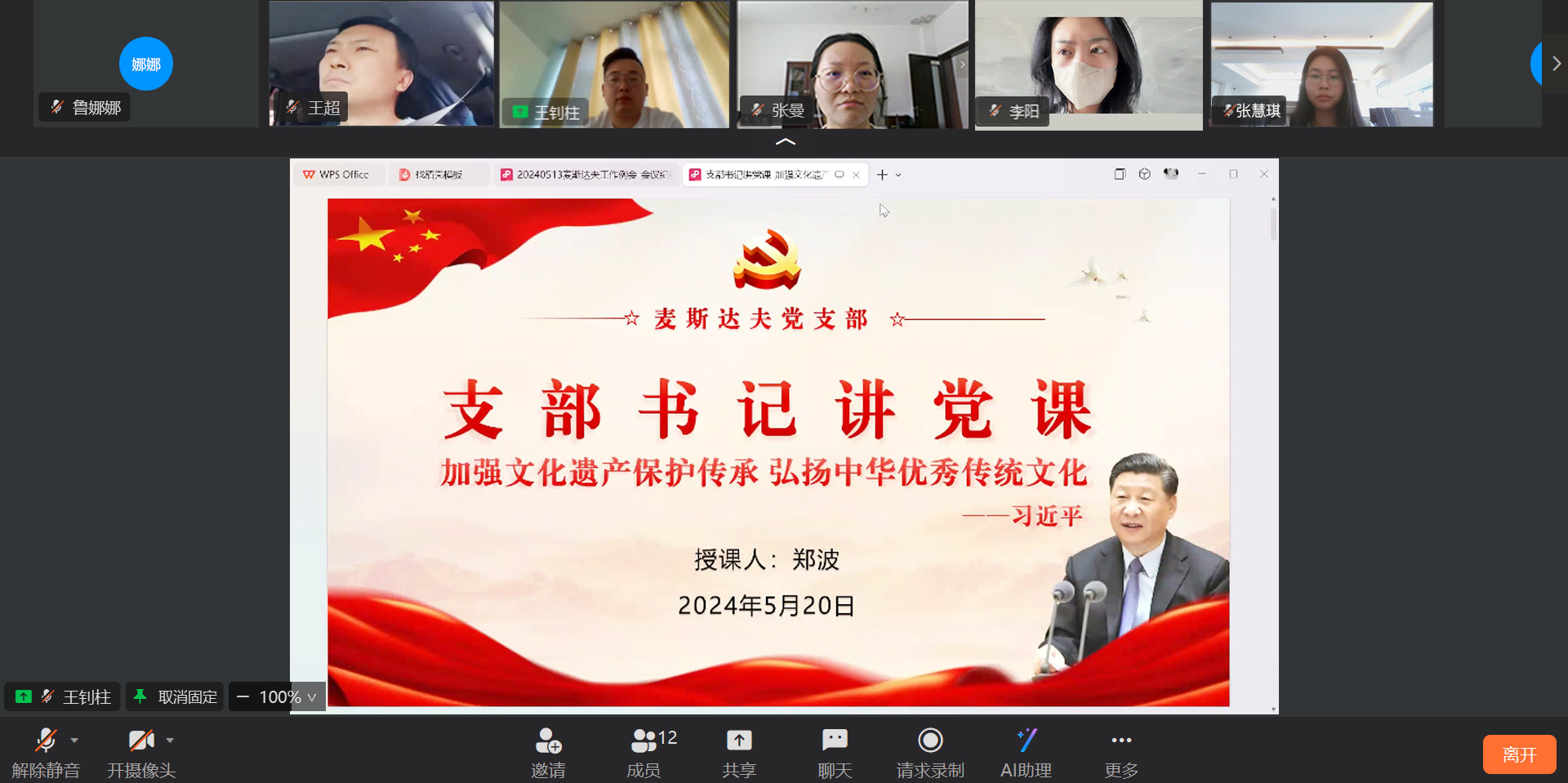 為深入貫徹落實(shí)習(xí)近平總書記關(guān)于文物工作重要論述和指示批示精神,充分發(fā)揮文物資源傳承文明、教育人民、服務(wù)社會(huì)、推動(dòng)發(fā)展作用,2024年5月20日,中共北京麥斯達(dá)夫科技股份有限公司支部委員會(huì)以線上線下相結(jié)合的形式組織開展“支部書記講黨課”活動(dòng),黨支部書記鄭波以“加強(qiáng)文化遺產(chǎn)保護(hù)傳承,弘揚(yáng)中華優(yōu)秀傳統(tǒng)文化”為題向公司全員講授專題黨課。