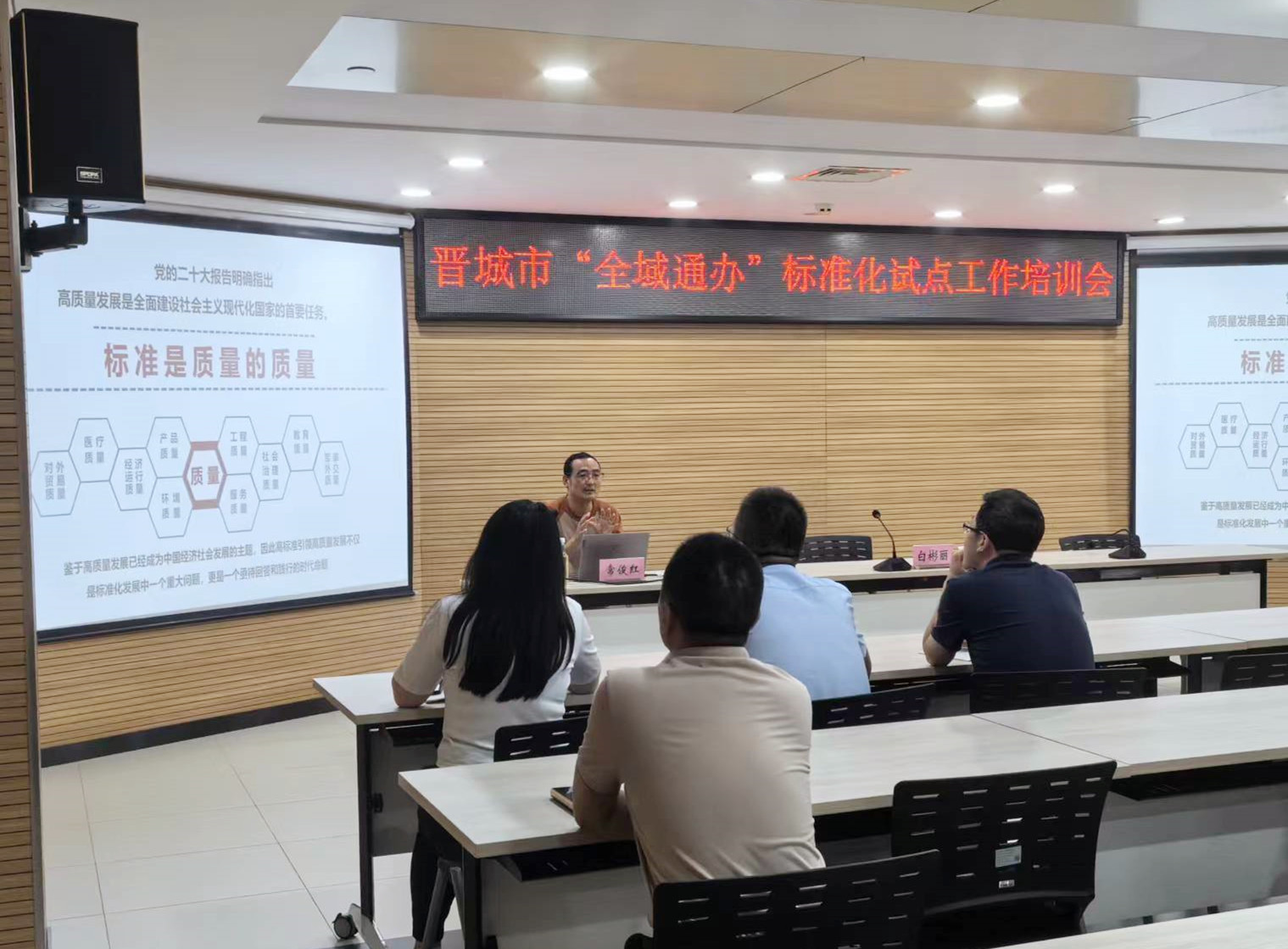 2024年7月11日,晉城政務服務事項“全域通辦”標準化試點工作培訓會議召開。晉城市政務服務中心主任白彬利、副主任王飛,市政務服務中心各入駐單位及各縣(市、區(qū))行政審批服務管理局負責政務服務標準化和政務服務事項“全域通辦”工作的分管領導及具體負責人參加會議。會議邀請山西省標準計量技術研究院高級工程師??〖t進行專題培訓,白彬利作開場致辭。