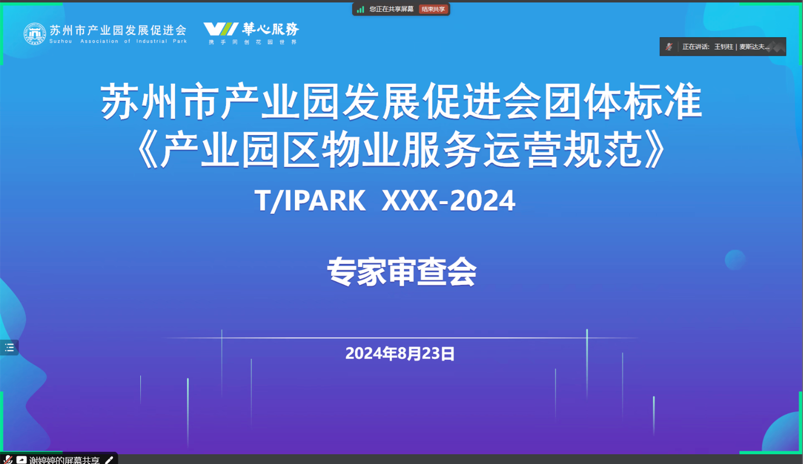 2024年8月23日,由蘇州市產(chǎn)業(yè)園發(fā)展促進(jìn)會歸口、蘇州華新國際物業(yè)管理有限公司主導(dǎo)編制的《產(chǎn)業(yè)園區(qū)物業(yè)服務(wù)運(yùn)營規(guī)范》團(tuán)體標(biāo)準(zhǔn)專家審查會以線上會議形式召開。來自蘇州市市場監(jiān)督管理局、中國標(biāo)準(zhǔn)化研究院、江蘇省質(zhì)量和標(biāo)準(zhǔn)化研究院、全國物業(yè)服務(wù)標(biāo)準(zhǔn)化技術(shù)委員會、招商局積余產(chǎn)業(yè)運(yùn)營服務(wù)股份有限公司的五位專家組成標(biāo)準(zhǔn)審查專家組。蘇州華心科技服務(wù)集團(tuán)副總裁鄒一敏、品質(zhì)運(yùn)營中心副總經(jīng)理崔秋菊、產(chǎn)服中心產(chǎn)品經(jīng)理劉浩、發(fā)展中心發(fā)展經(jīng)理張敬,蘇州市產(chǎn)業(yè)園發(fā)展促進(jìn)會招商信息處處長王濤出席會議。會議由麥斯達(dá)夫標(biāo)準(zhǔn)化市場總監(jiān)、蘇州公司總經(jīng)理王釗柱主持。