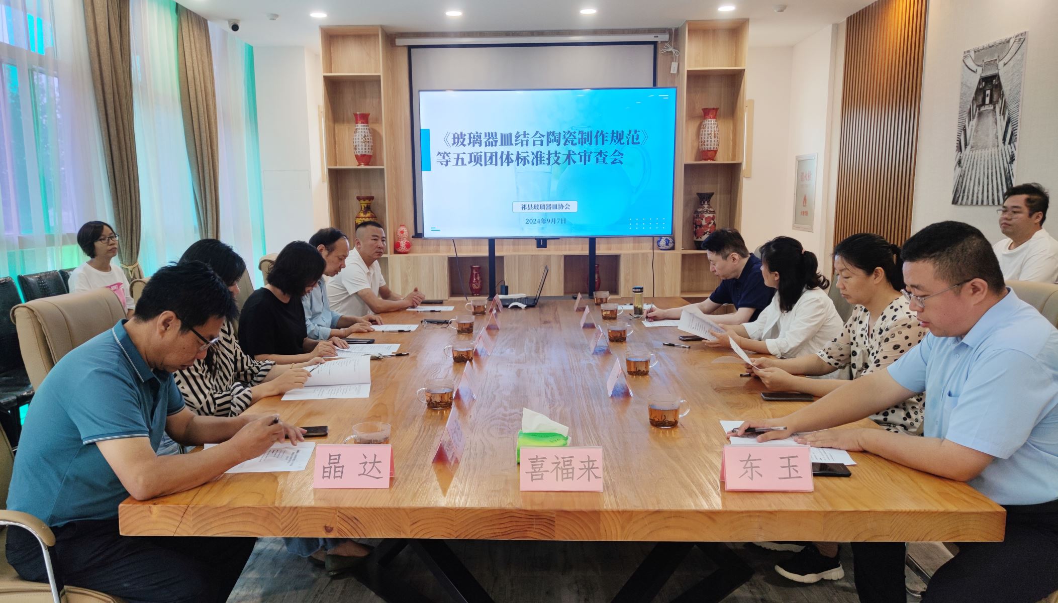 麥斯達夫標準化作為祁縣玻璃器皿協會系列團體標準的技術支撐單位,王超、侯曉婷、李陽參加會議。
