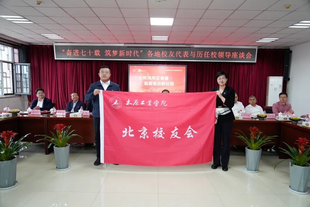 會(huì)上,黨委副書(shū)記、院長(zhǎng)梁玉蓉為新當(dāng)選的太工北京校友會(huì)會(huì)長(zhǎng)鄭波授旗、頒發(fā)會(huì)長(zhǎng)聘書(shū)。
