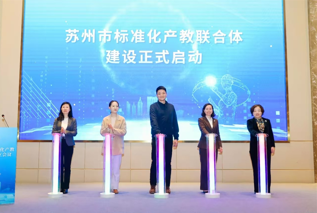 為進(jìn)一步貫徹落實《標(biāo)準(zhǔn)化人才培養(yǎng)專項行動計劃(2023-2025年)》,有力推進(jìn)產(chǎn)業(yè)、標(biāo)準(zhǔn)化、人才培養(yǎng)互促發(fā)展,實現(xiàn)以教促產(chǎn)、以產(chǎn)助教,深化產(chǎn)教融合、產(chǎn)學(xué)合作,2024年11月26日,蘇州市標(biāo)準(zhǔn)化產(chǎn)教聯(lián)合體成立會議召開。全國市場監(jiān)督管理總局專業(yè)技術(shù)人才開發(fā)中心網(wǎng)絡(luò)教育部處長、全國市場監(jiān)管職業(yè)教育教學(xué)指導(dǎo)委員會秘書處辦公室主任陳國棟,全國市場監(jiān)管職業(yè)教育教學(xué)指導(dǎo)委員會標(biāo)準(zhǔn)化類專業(yè)委員會秘書長顧興全,江蘇省市場監(jiān)督管理局標(biāo)準(zhǔn)化管理處副處長王亞杰,蘇州市市場監(jiān)督管理局副局長王燕,吳中區(qū)人民政府副區(qū)長李燁,吳中區(qū)市場監(jiān)督管理局局長孔岳榮,以及來自市級機(jī)關(guān)工委、市教育局、市科技局、市人社局、市總工會、市工商聯(lián)等相關(guān)處室的負(fù)責(zé)人,全市市場監(jiān)管系統(tǒng)有關(guān)負(fù)責(zé)人員、市標(biāo)準(zhǔn)化產(chǎn)教聯(lián)合體首批成員單位等有關(guān)領(lǐng)導(dǎo)和嘉賓出席會議。
