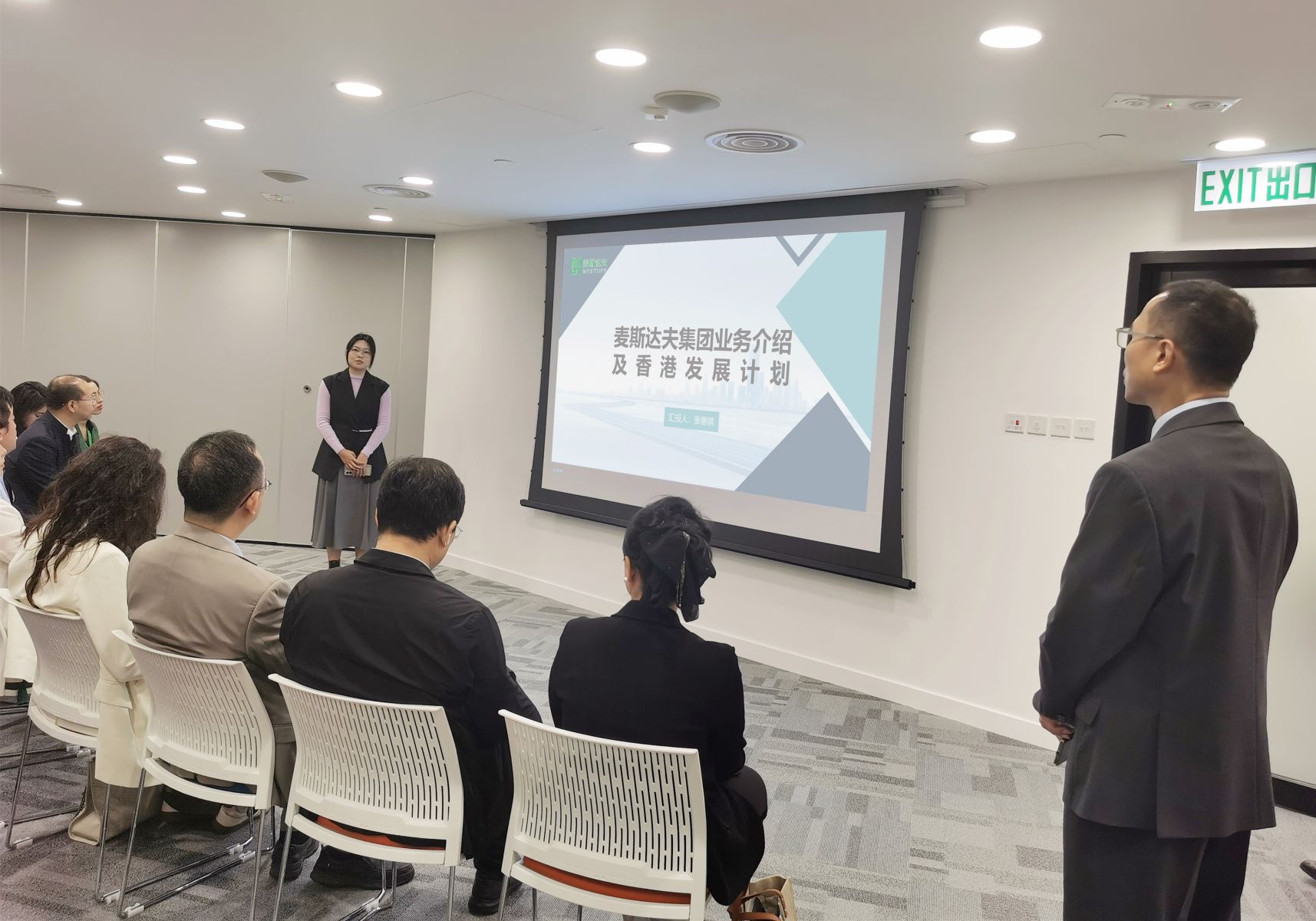 2025年4月14日,香港麥斯達夫經(jīng)理張惠棋隨團參訪香港引進重點企業(yè)辦公室(OASES),在中關(guān)村科技企業(yè)落地香港座談分享交流會上作專題宣講。