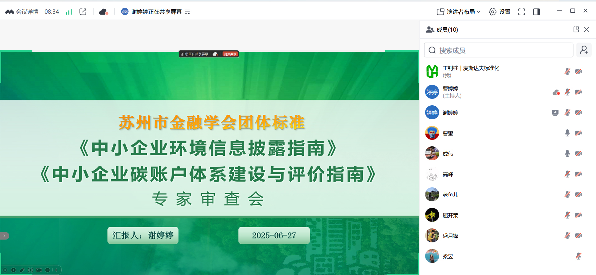 2025年6月27日,蘇州市金融學會組織召開由蘇州資產(chǎn)投資管理集團有限公司主導編制的《中小企業(yè)環(huán)境信息披露指南》《中小企業(yè)碳賬戶體系建設(shè)與評價指南》兩項團體標準專家審查會。來自中國標準化研究院、蘇州市計量測試院、興業(yè)銀行蘇州分行、江蘇銀行蘇州分行、張家港農(nóng)村商業(yè)銀行等單位的七位專家組成標準審查專家組。會議由蘇州麥斯達夫標準技術(shù)服務(wù)有限公司總經(jīng)理王釗柱主持。