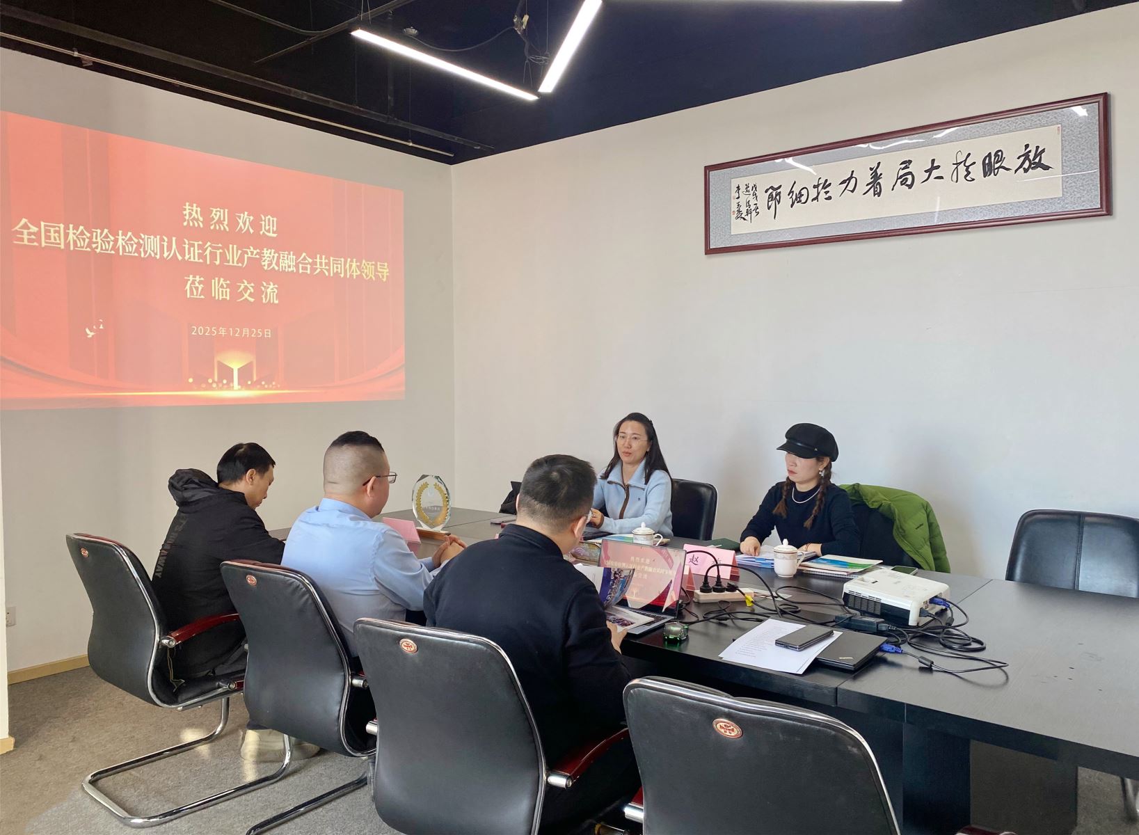 2025年12月25日,全國檢驗檢測認證行業(yè)產(chǎn)教融合共同體副秘書長朱麗娜一行到訪麥斯達夫集團北京總部,與集團創(chuàng)始人、首席執(zhí)行官鄭波,聯(lián)合創(chuàng)始人、首席運營官王超,市場總監(jiān)王釗柱舉行座談。