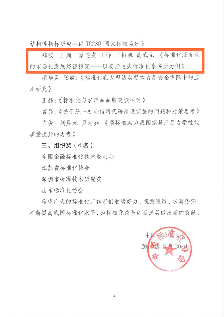 我所論文《標(biāo)準(zhǔn)化服務(wù)業(yè)的市場(chǎng)化發(fā)展路徑研究》獲第十六屆中國標(biāo)準(zhǔn)化論壇優(yōu)秀獎(jiǎng)