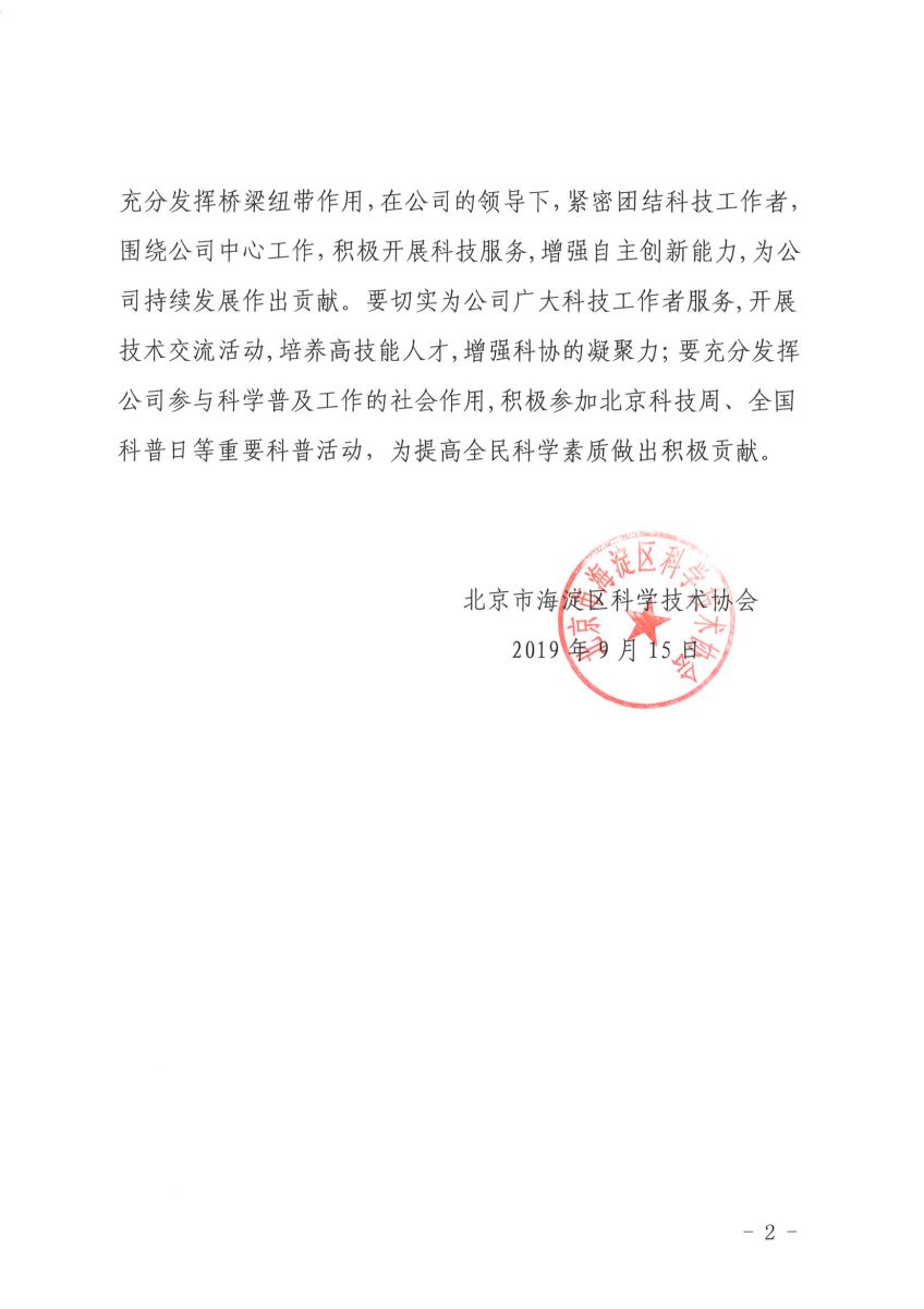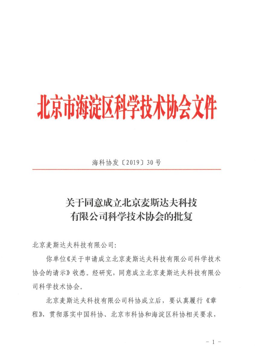 北京麥斯達夫科技有限公司科學(xué)技術(shù)協(xié)會獲組織同意批復(fù)