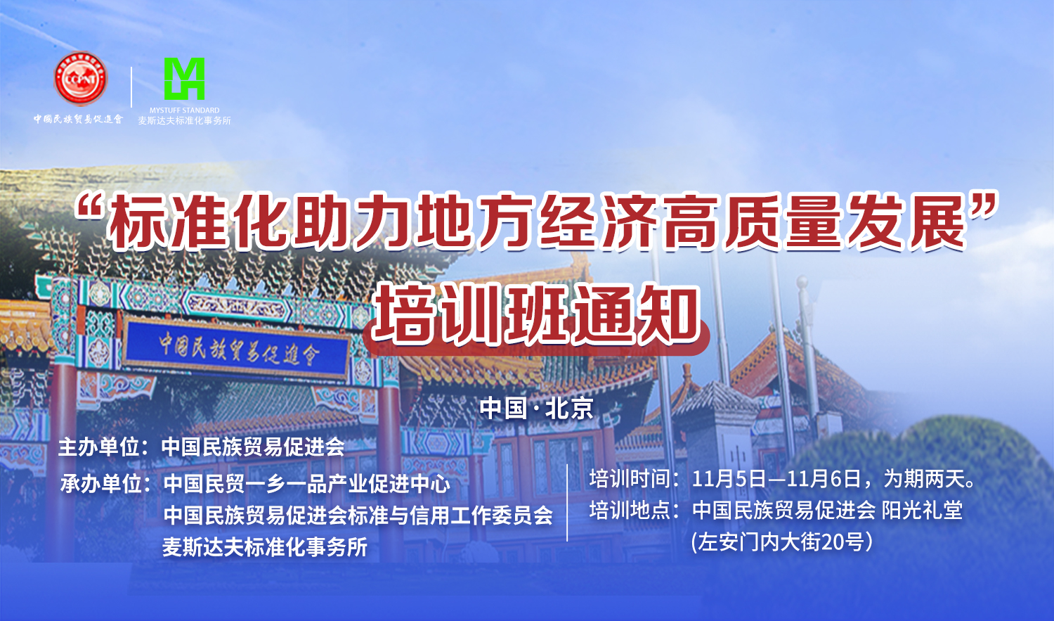 為進(jìn)一步提升中國一鄉(xiāng)一品標(biāo)準(zhǔn)化品牌價(jià)值,順利推動(dòng)標(biāo)準(zhǔn)化工作的落地,有效服務(wù)一鄉(xiāng)一品特色產(chǎn)業(yè)質(zhì)量提升,中國民族貿(mào)易促進(jìn)會(huì)決定舉辦“標(biāo)準(zhǔn)化助力地方經(jīng)濟(jì)高質(zhì)量發(fā)展”培訓(xùn)班?,F(xiàn)將有關(guān)事宜通知如下: