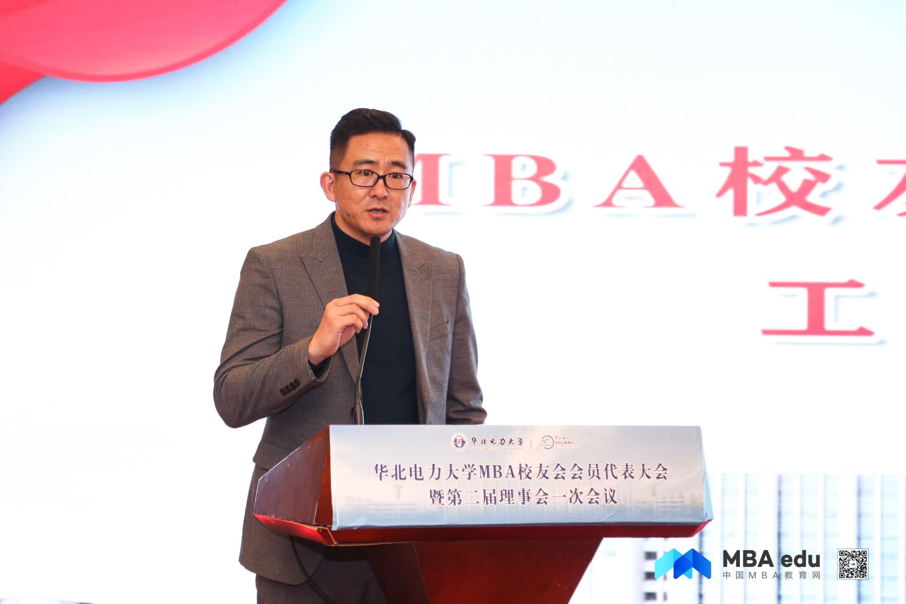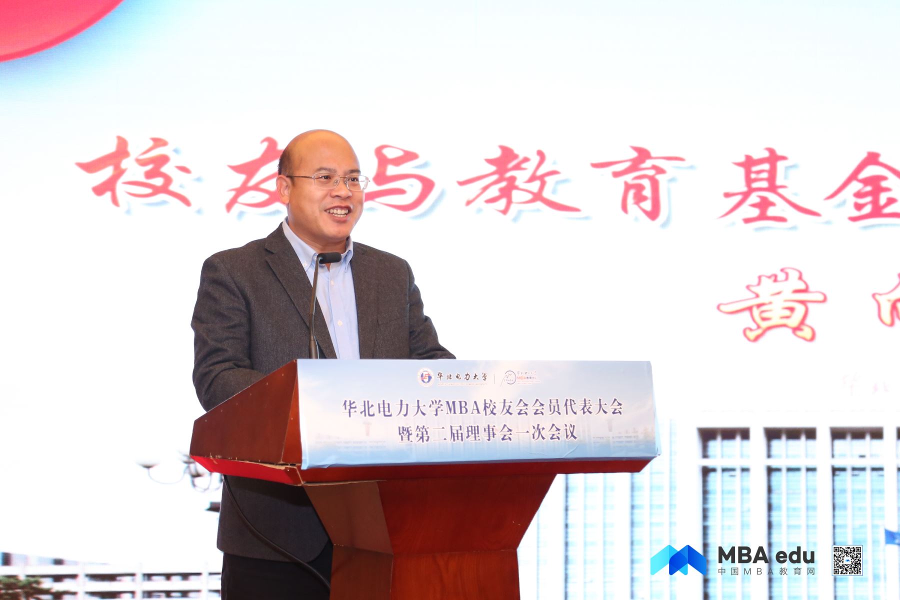 華北電力大學MBA校友會第一屆理事會秘書長柏冰做工作報告,并對新一屆MBA校友會理事會寄予深切祝福。
