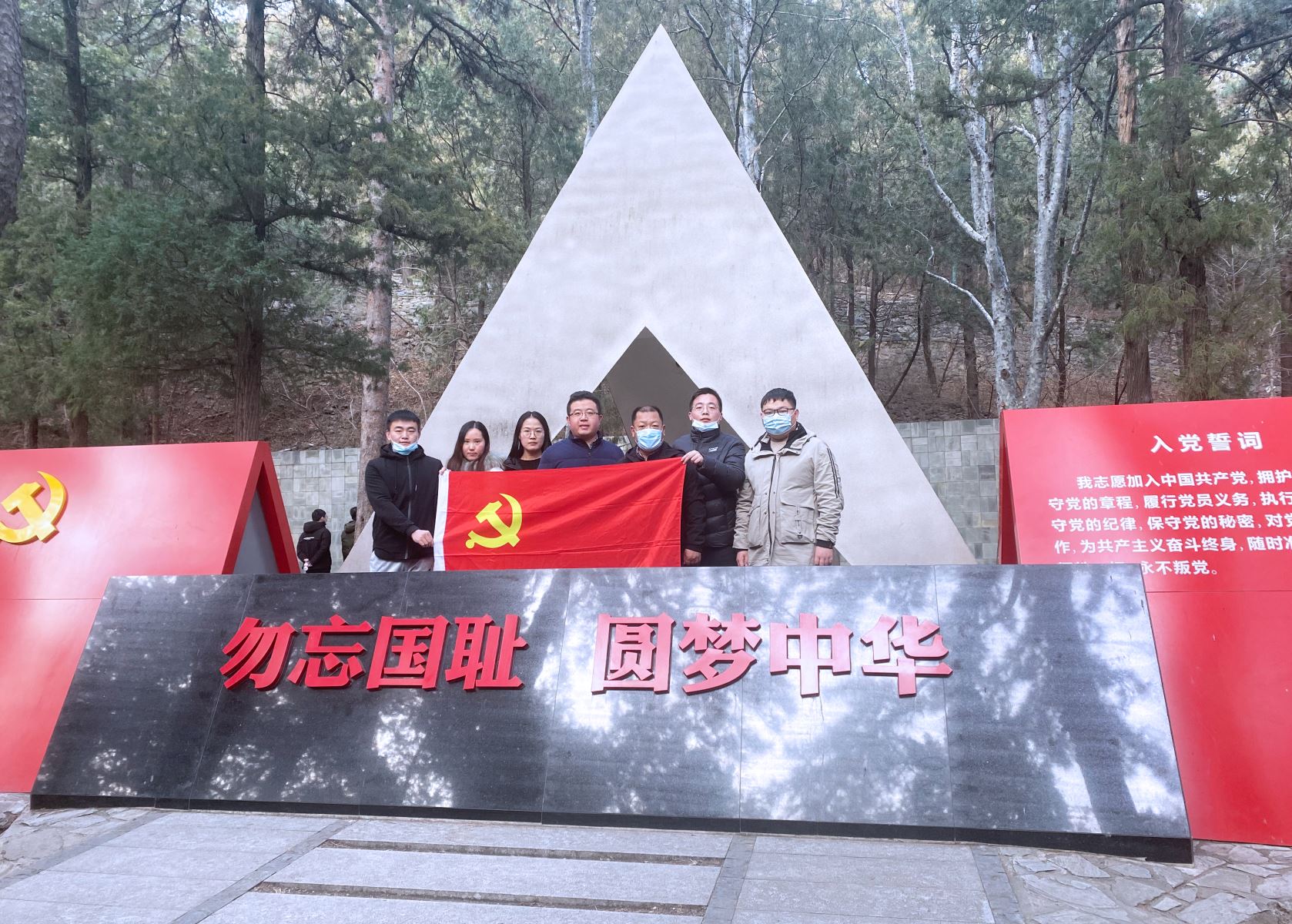 按照公司2020年度黨建活動計劃,為推動“不忘初心、牢記使命”主題教育深入開展,確保教育全員參與、成果輻射全員,麥斯達夫標(biāo)準(zhǔn)化黨支部、團支部于2020年12月9日組織開展“青年當(dāng)自強、青年有擔(dān)當(dāng)”主題教育活動。在黨支部書記鄭波和黨建指導(dǎo)員郝宏強同志帶領(lǐng)下,麥斯達夫在京黨員、入黨積極分子和團員集體前往北京植物園“一二·九”運動紀(jì)念亭。