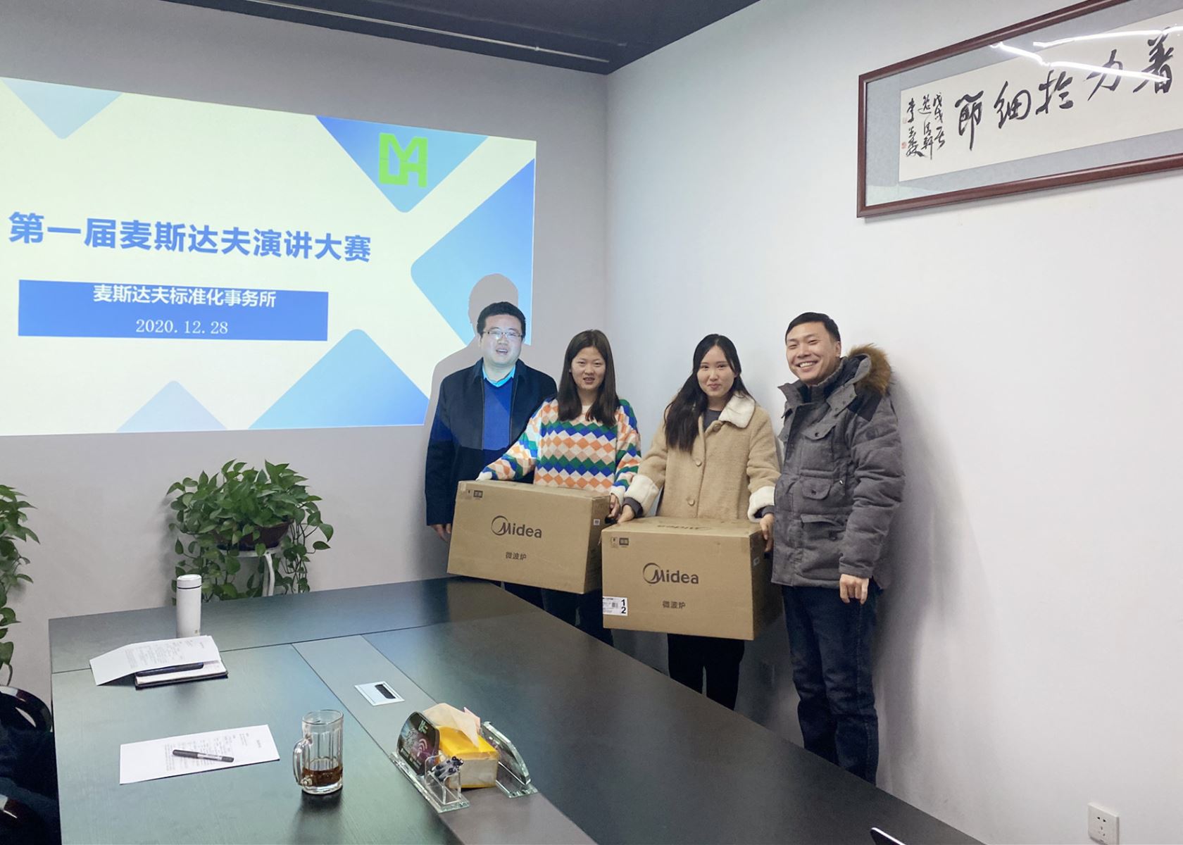 2020年12月28日,第一屆麥斯達(dá)夫演講大賽在北京總部會(huì)議室成功舉辦。比賽由首席執(zhí)行官、黨支部書記鄭波,首席運(yùn)營官、工會(huì)主席王超,寧波公司總經(jīng)理王振凱,黨建指導(dǎo)員郝宏強(qiáng)四人擔(dān)任評(píng)委。設(shè)一等獎(jiǎng)一名、二等獎(jiǎng)兩名、三等獎(jiǎng)三名,比賽共10名選手參加。
