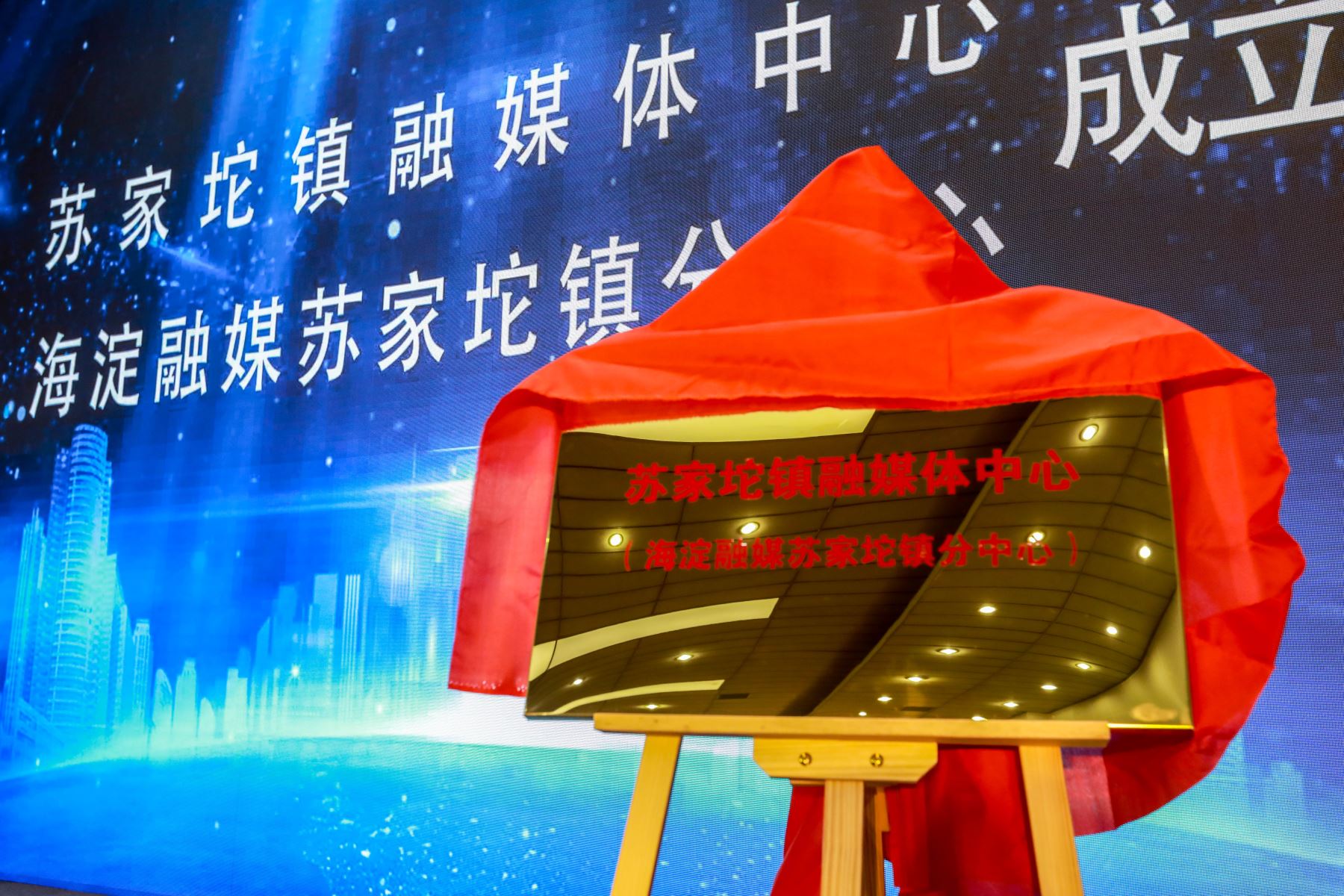 會議播放了海淀區(qū)融媒體中心蘇家坨分中心宣傳視頻后,佟志偉和張文濤一同為海淀區(qū)融媒體中心蘇家坨分中心揭牌。