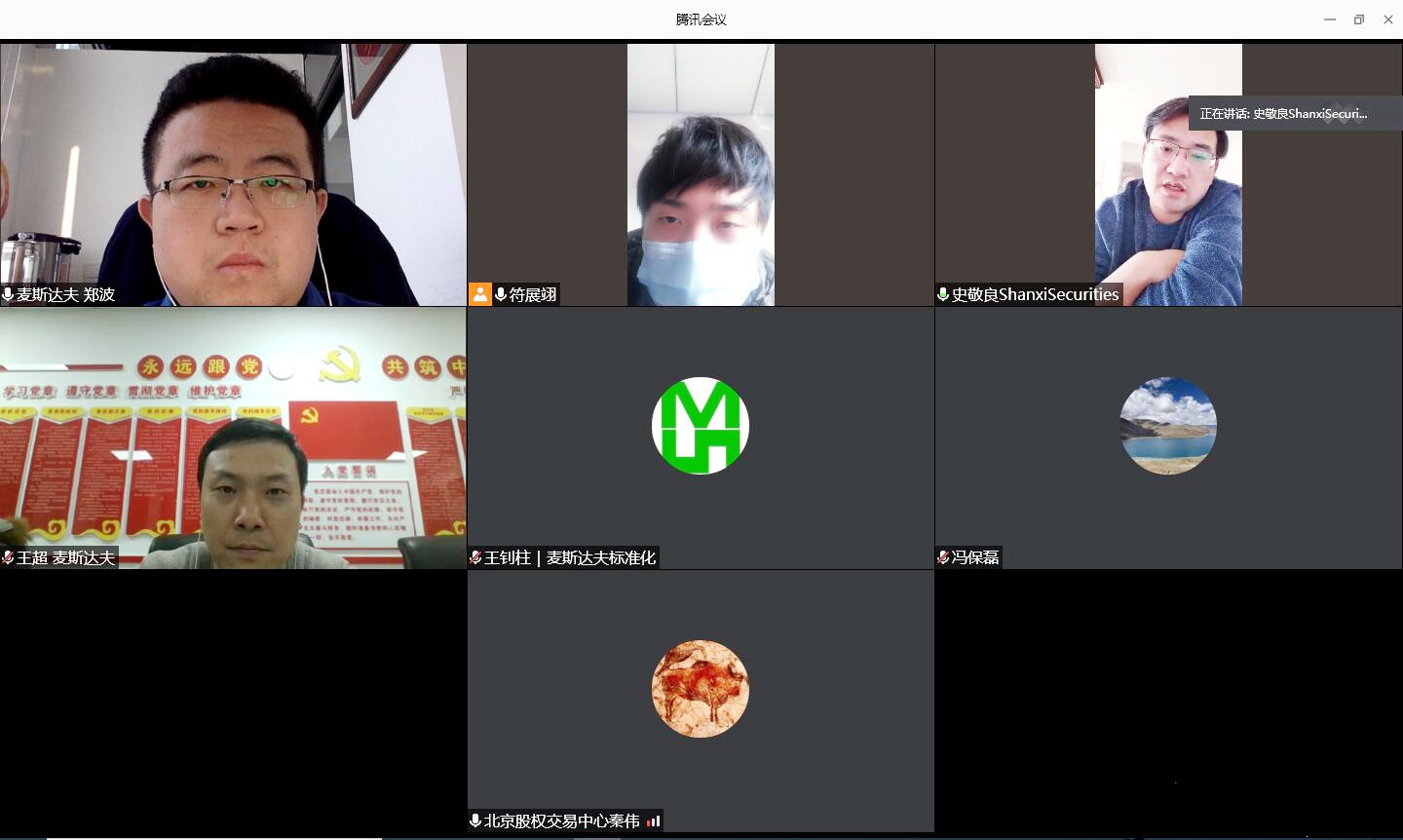 2021年1月20日,全國中小企業(yè)股份轉(zhuǎn)讓系統(tǒng)掛牌第二次輔導(dǎo)會以視頻會議形式召開。北京股權(quán)交易中心投資者與產(chǎn)品部負(fù)責(zé)人符展翊、高級經(jīng)理秦偉出席會議,山西證券中小企業(yè)金融業(yè)務(wù)部業(yè)務(wù)董事史敬良,會計師馮保磊、行業(yè)分析師陳娟,麥斯達(dá)夫首席執(zhí)行官鄭波、首席運營官王超、市場總監(jiān)王釗柱參加會議。