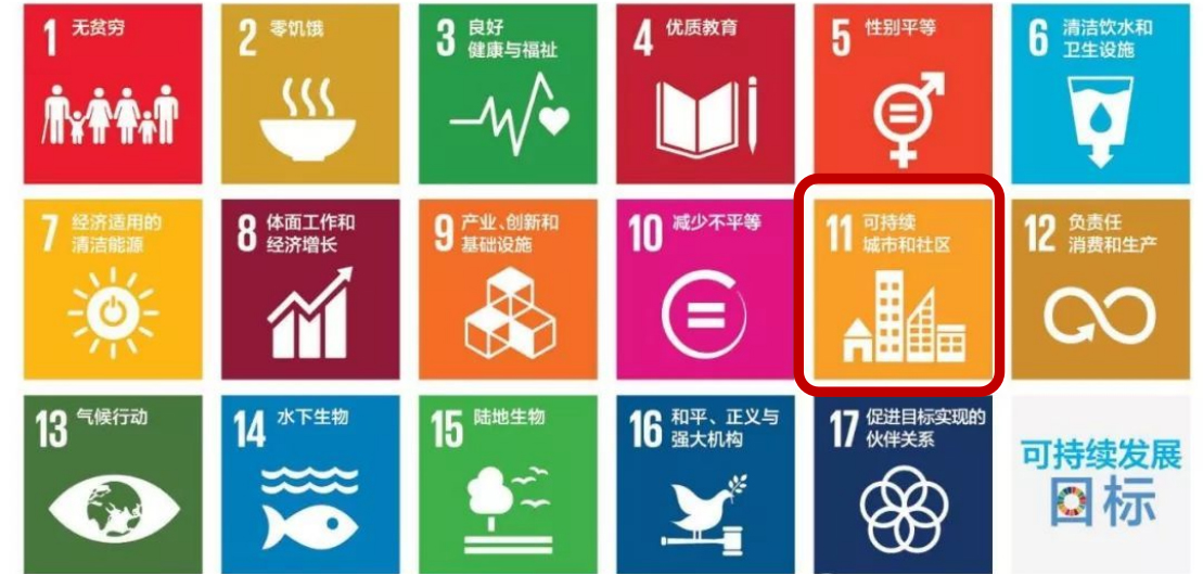 • 2016年1月1日,2030年可持續(xù)議程在全球正式啟動(dòng),發(fā)布了17項(xiàng)可持續(xù)發(fā)展目標(biāo),其中第11項(xiàng):可持續(xù)城市和社區(qū)。