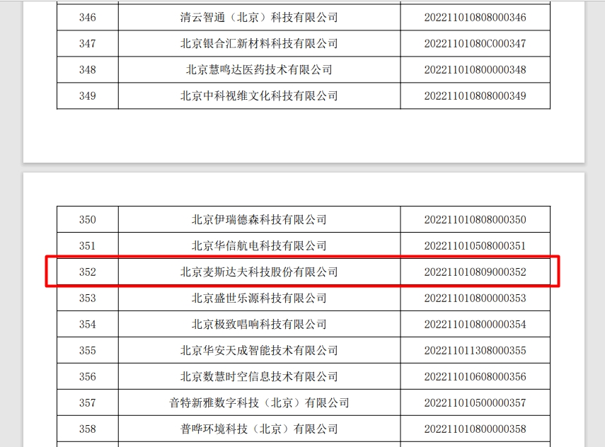 2022年3月23日,北京市科學(xué)技術(shù)委員會(huì)、中關(guān)村科技園區(qū)管理委員會(huì)發(fā)布《關(guān)于2022年第1批入庫(kù)科技型中小企業(yè)名單的公告》,共470家企業(yè)入圍,其中北京麥斯達(dá)夫科技股份有限公司成功位列其中。