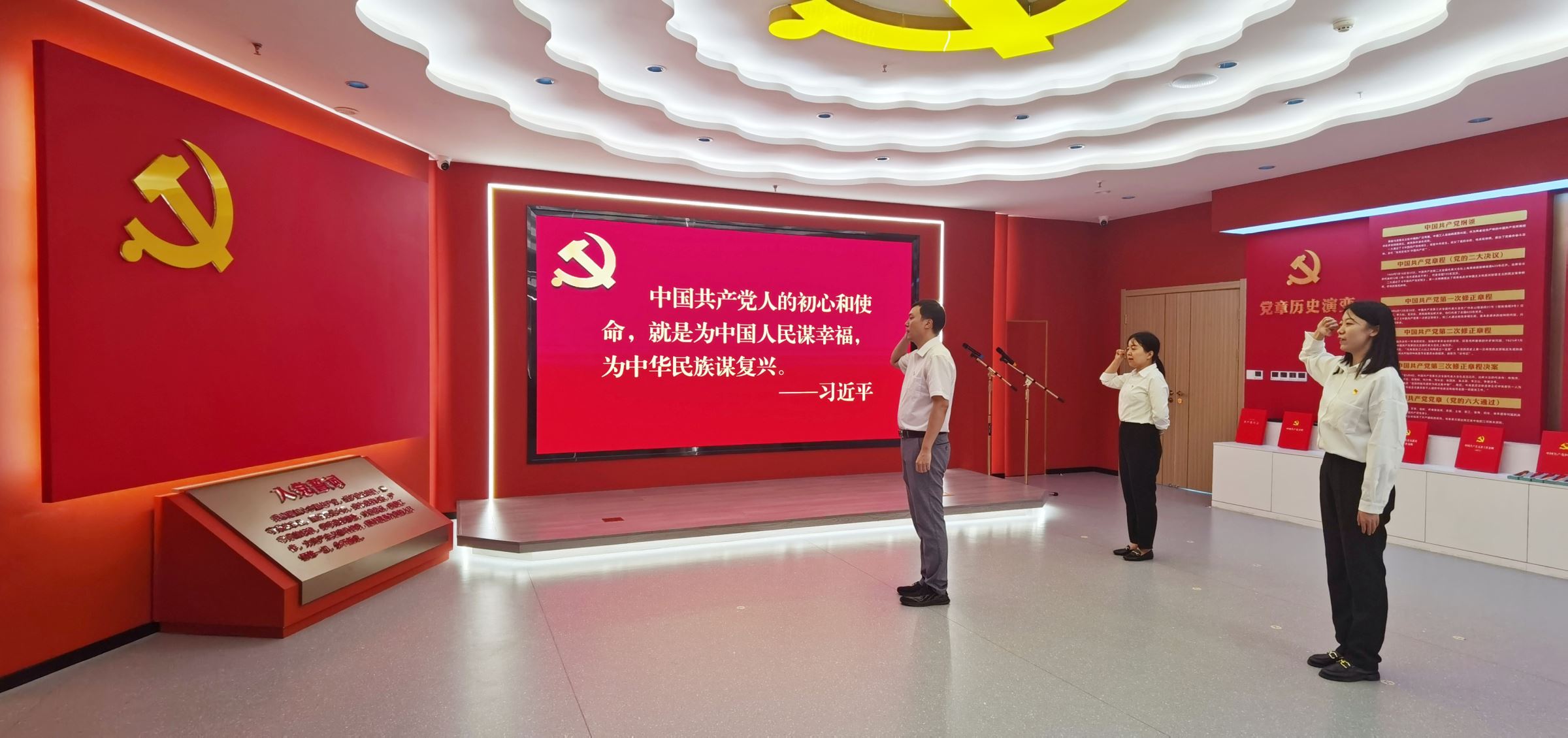 在“六有”黨員活動(dòng)室,大家看到了按照“有場(chǎng)所、有設(shè)施、有標(biāo)志、有黨旗、有書報(bào)、有制度”標(biāo)準(zhǔn),打造的標(biāo)準(zhǔn)化、規(guī)范化的陣地樣板。在黨員宣誓大廳,講解員介紹了黨章、黨旗及入黨誓詞歷史演變過(guò)程。最后,在莊重嚴(yán)肅的入黨宣誓區(qū)域,黨支部副書記王超帶領(lǐng)公司駐晉黨員面對(duì)莊嚴(yán)的黨旗,重溫了入黨誓詞。