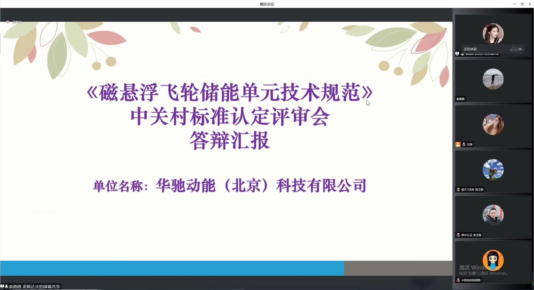 2022年10月12日,中關村標準化協(xié)會以線上會議形式召開《磁懸浮飛輪儲能單元技術規(guī)范》《磁懸浮飛輪儲能系統(tǒng)技術規(guī)范》兩項中關村標準認定評審會。來自中國電力科學研究院、中國航天標準化研究所、北京化工大學、內蒙古電力公司等單位的專家組成認定評審專家組。標準主編單位華馳動能(北京)科技有限公司首席技術官蘇森參加會議并陳述答辯。