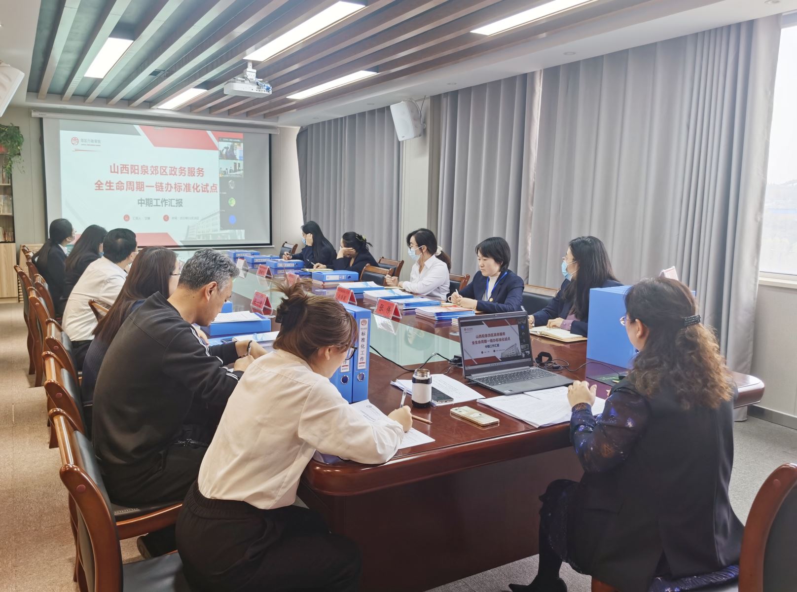 陽泉市郊區(qū)行政審批服務(wù)管理局綜合辦公室主任景媛做試點(diǎn)建設(shè)工作匯報(bào)。評(píng)估專家組按照《社會(huì)管理和公共服務(wù)綜合標(biāo)準(zhǔn)化試點(diǎn)評(píng)估計(jì)分表》要求,通過聽取匯報(bào)、查看材料、詢問答辯等形式,對(duì)山西陽泉郊區(qū)政務(wù)服務(wù)“全生命周期一鏈辦”標(biāo)準(zhǔn)化試點(diǎn)進(jìn)行了綜合考評(píng)。評(píng)估專家組認(rèn)為,試點(diǎn)工作豐富,標(biāo)準(zhǔn)體系健全,較好完成了試點(diǎn)建設(shè)階段性工作,并建議下一步要更加聚焦“全生命周期一鏈辦”健全完善標(biāo)準(zhǔn)體系,加強(qiáng)實(shí)施檢查和持續(xù)改進(jìn),完善標(biāo)準(zhǔn)化工作獎(jiǎng)勵(lì)機(jī)制,多出工作實(shí)效、貢獻(xiàn)亮點(diǎn)經(jīng)驗(yàn)。