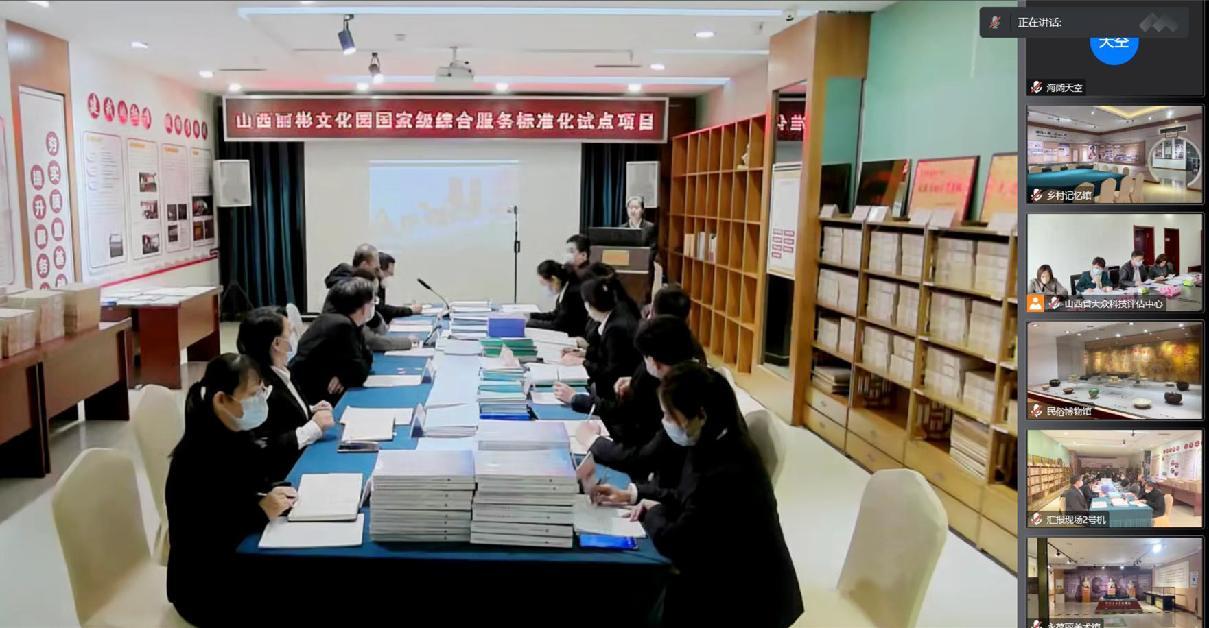 本次線上匯報,山西麗彬文化園設(shè)置1個主會場(匯報現(xiàn)場主會場),4個分會場(永葆麗美術(shù)館、民俗博物館、鄉(xiāng)村記憶館、匯報現(xiàn)場分會場)。匯報初始,山西麗彬文化園播放了以《文化為魂,創(chuàng)新融合》為主題的宣傳片。隨后,匯報了試點(diǎn)建設(shè)工作情況,并連線展示了綜合服務(wù)實(shí)景。評估專家組按照《服務(wù)業(yè)標(biāo)準(zhǔn)化試點(diǎn)實(shí)施細(xì)則》要求,通過聽取匯報、查看材料、詢問答辯等環(huán)節(jié),對山西麗彬文化園承擔(dān)的“山西麗彬文化園綜合服務(wù)標(biāo)準(zhǔn)化試點(diǎn)”進(jìn)行了全面評估。評估專家組認(rèn)為,山西麗彬文化園達(dá)到了標(biāo)準(zhǔn)化試點(diǎn)建設(shè)各項目標(biāo)要求,試點(diǎn)建設(shè)成效明顯,圓滿完成了國家級服務(wù)業(yè)標(biāo)準(zhǔn)化試點(diǎn)的建設(shè)任務(wù)。