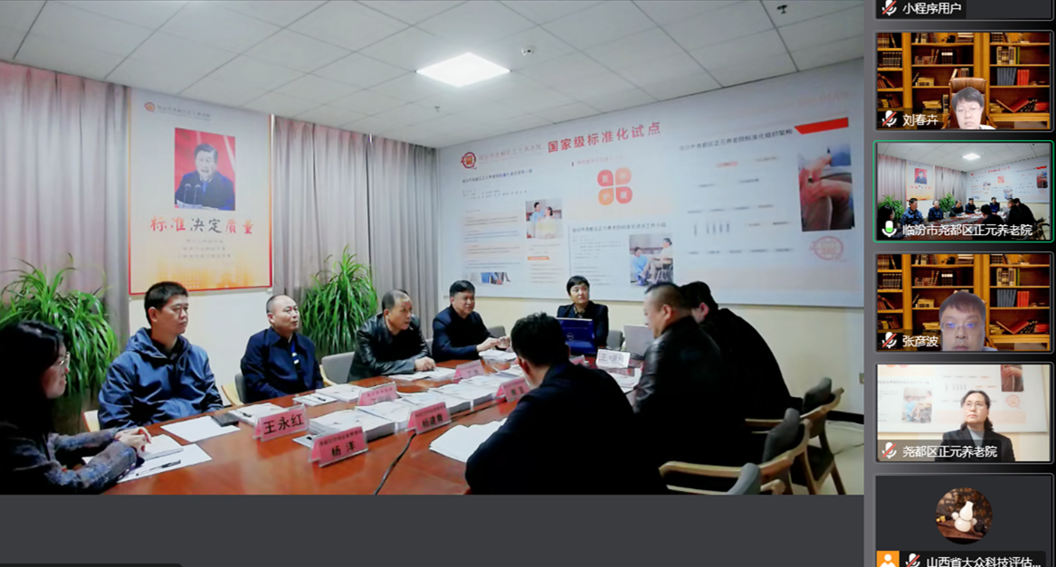 2022年11月19日,臨汾市堯都區(qū)正元養(yǎng)老院養(yǎng)老服務(wù)標(biāo)準(zhǔn)化試點中期驗收評估會以網(wǎng)絡(luò)會議形式召開。山西省市場監(jiān)督管理局標(biāo)準(zhǔn)管理處處長王守業(yè)、二級調(diào)研員秦忠武帶隊,來自山西省社會科學(xué)院、山西省檢驗檢測中心、中國(山西)知識產(chǎn)權(quán)保護(hù)中心、中國標(biāo)準(zhǔn)化研究院、山西省標(biāo)準(zhǔn)計量技術(shù)研究院的五位專家組成評估專家組。臨汾市民政局一級調(diào)研員丁國剛、基層政權(quán)與社區(qū)治理科科長楊天國,臨汾市市場監(jiān)督管理局黨組成員丁旭、標(biāo)準(zhǔn)化科科長郭昱,堯都區(qū)市場監(jiān)管局標(biāo)準(zhǔn)計量認(rèn)證科科長楊建青,正元養(yǎng)老院董事長張根倉、院長王繼紅,副院長盧婷、王永紅等參加會議。