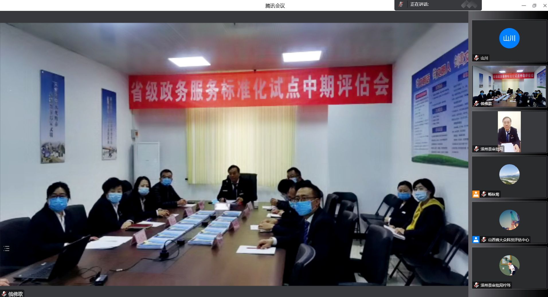 2022年11月29日,澤州縣政務(wù)服務(wù)標(biāo)準(zhǔn)化試點(diǎn)中期驗(yàn)收評(píng)估會(huì)以網(wǎng)絡(luò)會(huì)議形式召開。山西省市場(chǎng)監(jiān)督管理局標(biāo)準(zhǔn)管理處處長(zhǎng)王守業(yè)、二級(jí)調(diào)研員秦忠武帶隊(duì),來(lái)自山西省社會(huì)科學(xué)院、山西省檢驗(yàn)檢測(cè)中心、中國(guó)(山西)知識(shí)產(chǎn)權(quán)保護(hù)中心、山西省標(biāo)準(zhǔn)計(jì)量技術(shù)研究院等單位的專家組成評(píng)估專家組。澤州縣行政審批服務(wù)管理局局長(zhǎng)連海峰出席會(huì)議并做試點(diǎn)建設(shè)工作匯報(bào),晉城市市場(chǎng)監(jiān)督管理局標(biāo)準(zhǔn)化協(xié)調(diào)推進(jìn)科科長(zhǎng)李培元、副科長(zhǎng)段軍利,澤州縣行政審批服務(wù)管理局副局長(zhǎng)牛旭萍、四級(jí)主任科員侯智麗等人參加會(huì)議。