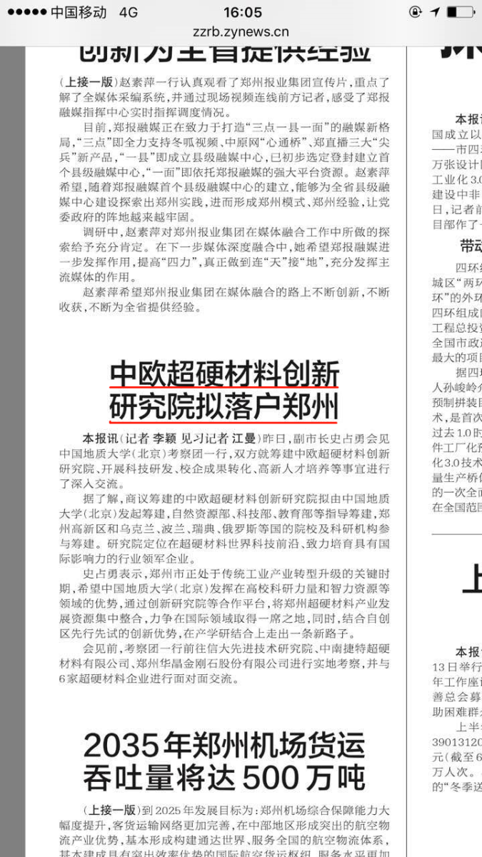 據(jù)了解,商議籌建的中歐超硬材料創(chuàng)新研究院擬由中國地質(zhì)大學(xué)(北京)發(fā)起籌建,自然資源部、科技部、教育部等指導(dǎo)籌建,鄭州高新區(qū)和烏克蘭、波蘭、瑞典、俄羅斯等國的院校及科研機構(gòu)參與籌建。研究院定位在超硬材料世界科技前沿、致力培育具有國際影響力的行業(yè)領(lǐng)軍企業(yè)。