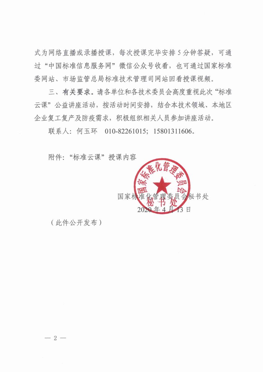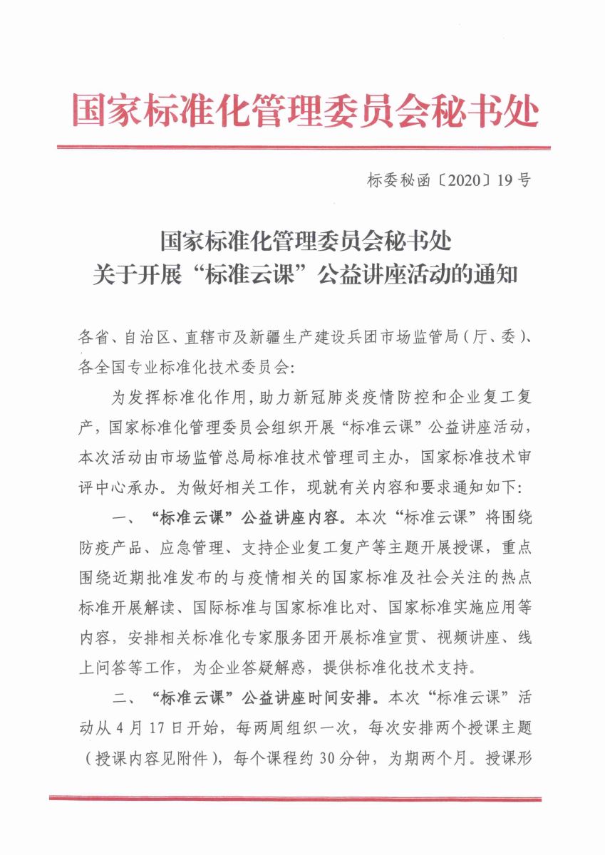 國(guó)家標(biāo)準(zhǔn)化管理委員會(huì)秘書處關(guān)于開(kāi)展“標(biāo)準(zhǔn)云課”公益講座活動(dòng)的通知