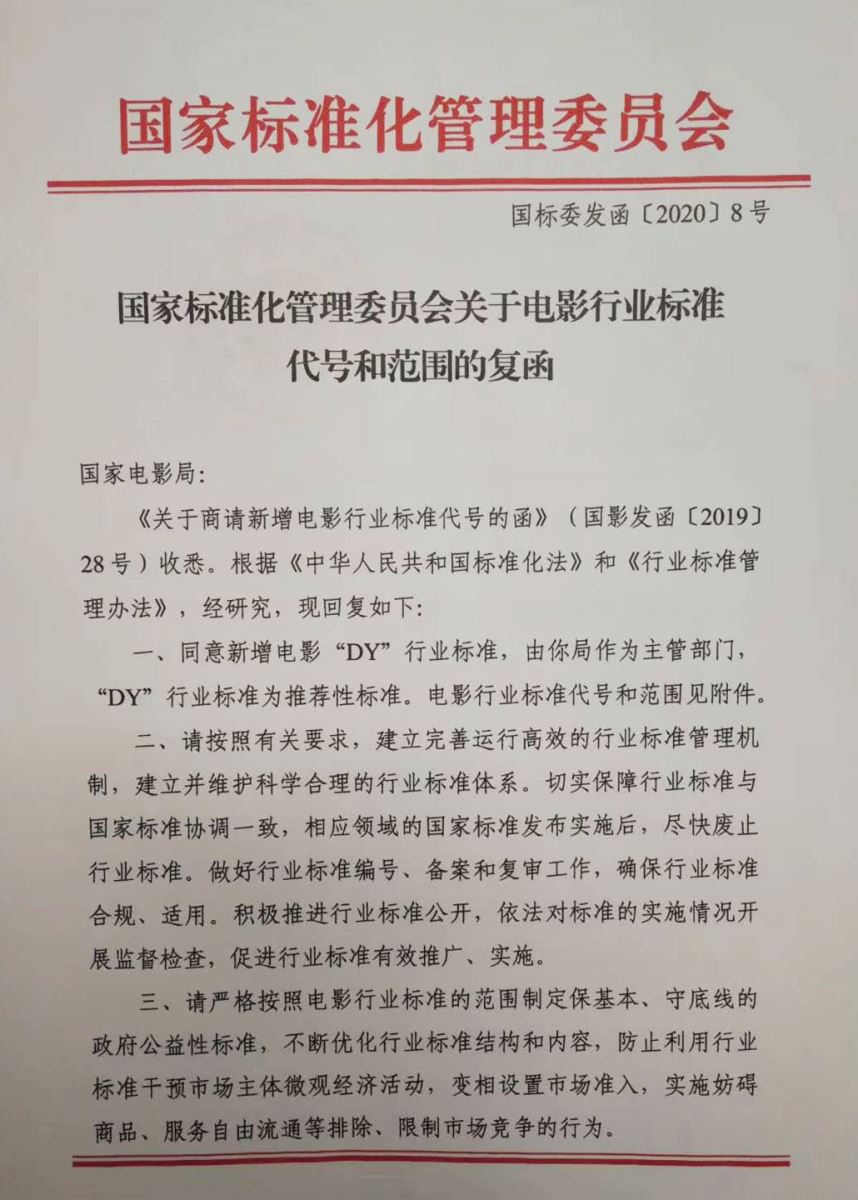 新增行標(biāo)丨“DY”電影行業(yè)標(biāo)準(zhǔn)