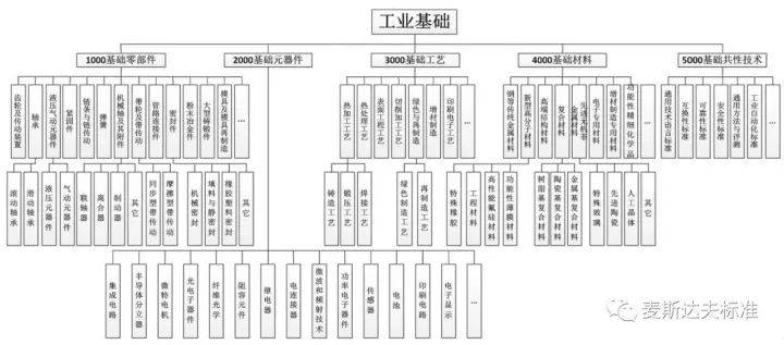 本指南所指工業(yè)基礎標準主要包括基礎零部件(元器件)、基礎工藝、基礎材料和基礎共性技術四部分。其中,基礎零部件(元器件)標準是工業(yè)基礎標準體系的主體,基礎材料標準是工業(yè)基礎標準體系的核心,基礎工藝標準是保障,基礎共性技術標準是工業(yè)基礎標準體系的基石。