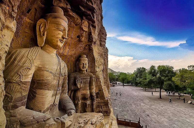 云岡石窟位于中國(guó)山西省大同市城西約16公里的武州(周)山南麓、武州川的北岸,地理位置為東經(jīng)113º20’,北緯40º04’。石窟依山開(kāi)鑿,規(guī)?;趾搿鈩?shì)雄渾,東西綿延約1公里,窟區(qū)自東而西依自然山勢(shì)分為東、中、西三區(qū)?,F(xiàn)存主要洞窟45個(gè),附屬洞窟209個(gè),雕刻面積達(dá)18000余平方米。造像最高為17米,最小為2厘米,佛龕約計(jì)1100多個(gè),大小造像59000余尊。云岡石窟距今已有1500年的歷史,是佛教藝術(shù)東傳中國(guó)后,第一次由一個(gè)民族用一個(gè)朝代雕作而成皇家風(fēng)范的佛教藝術(shù)寶庫(kù),是公元5世紀(jì)中西文化融合的歷史豐碑。1961年3月被國(guó)務(wù)院公布為首批全國(guó)重點(diǎn)文物保護(hù)單位;2001年12月被聯(lián)合國(guó)教科文組織批準(zhǔn)列入“世界文化遺產(chǎn)”名錄;2007年5月成為國(guó)家首批5A級(jí)旅游景區(qū)。