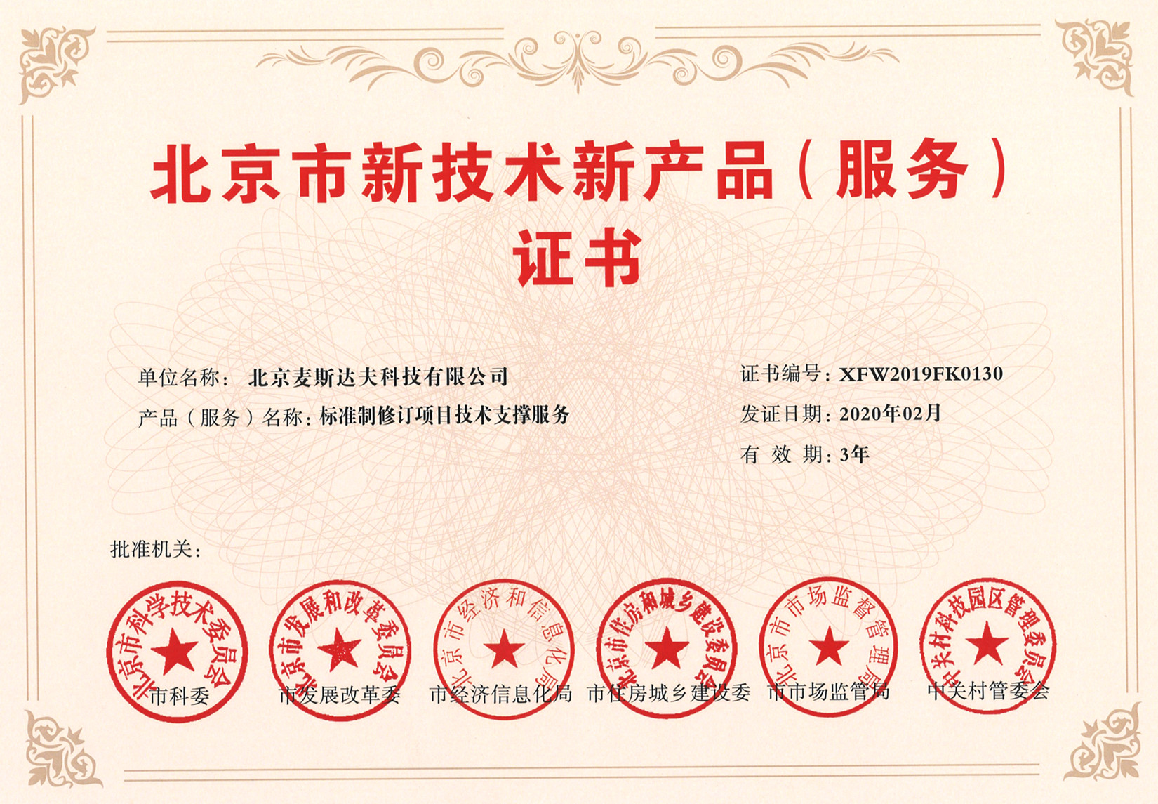 麥斯達夫標準化事務(wù)所申報的“標準制修訂項目技術(shù)支撐服務(wù)”成功入選第十一批北京市新技術(shù)新產(chǎn)品(服務(wù))。