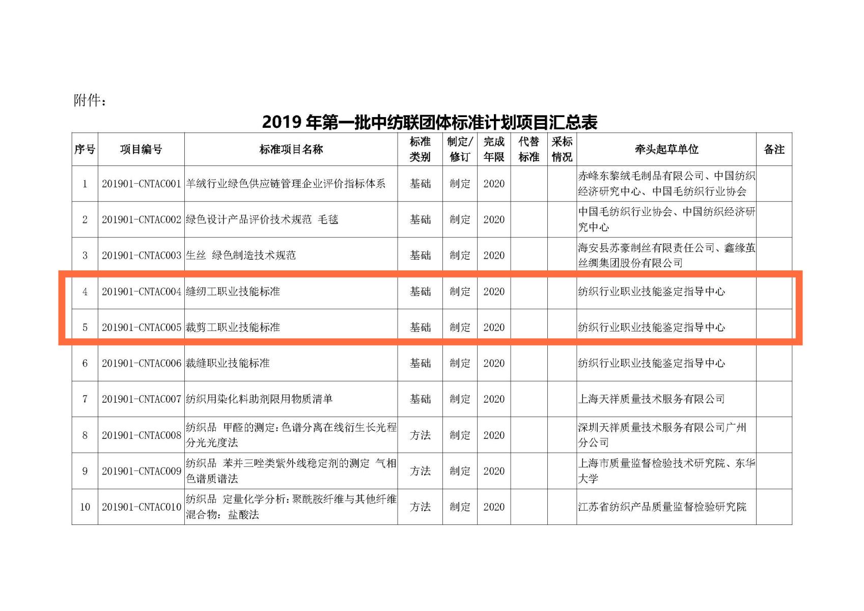根據(jù)《關(guān)于下達(dá)2019 年第一批中紡聯(lián)團(tuán)體標(biāo)準(zhǔn)計(jì)劃項(xiàng)目的通知》(中紡聯(lián)標(biāo)委函〔2019〕5 號(hào))要求,“縫紉工職業(yè)技能標(biāo)準(zhǔn)”、“裁剪工職業(yè)技能標(biāo)準(zhǔn)”“裁縫職業(yè)技能標(biāo)準(zhǔn)”三項(xiàng)中國(guó)紡織工業(yè)聯(lián)合會(huì)團(tuán)體標(biāo)準(zhǔn)的完成時(shí)限為2020年。