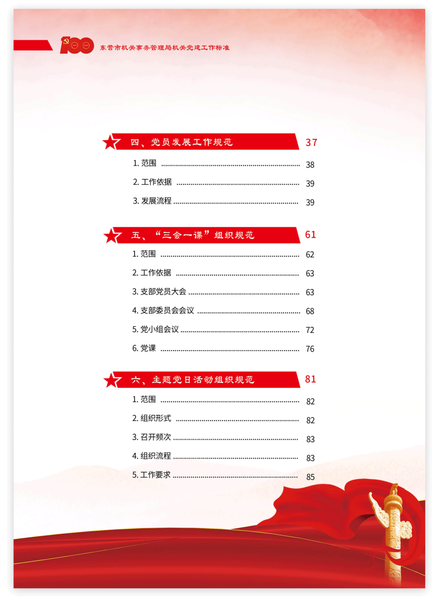 《東營市機關(guān)事務(wù)管理局機關(guān)黨建工作標(biāo)準(zhǔn)》(圖解版)是“標(biāo)準(zhǔn)化+機關(guān)黨建”的全新嘗試,它的發(fā)布恰逢中國共產(chǎn)黨成立100周年之際,是獻給黨的最好禮物。下一步麥斯達夫標(biāo)準(zhǔn)化將繼續(xù)探索“標(biāo)準(zhǔn)化+”解決方案,秉承“放眼于大局,著力于細節(jié)”的服務(wù)理念,堅持以滿足客戶需求為服務(wù)宗旨,努力建設(shè)成為國內(nèi)一流、國際知名的標(biāo)準(zhǔn)化解決方案提供商。