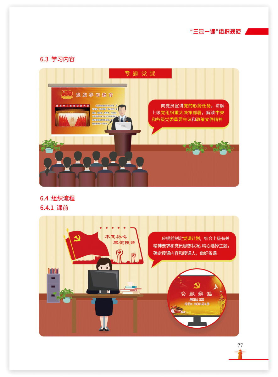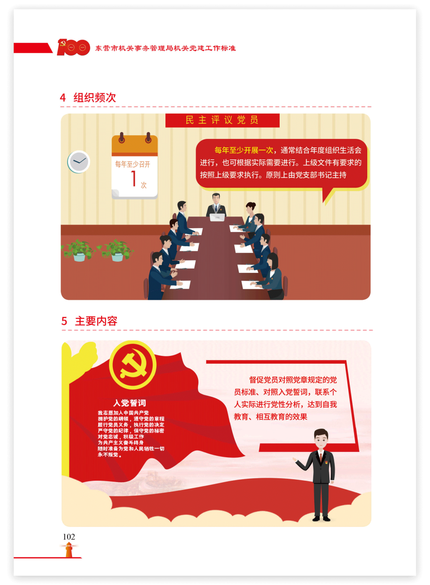 《東營市機關(guān)事務(wù)管理局機關(guān)黨建工作標(biāo)準(zhǔn)》(圖解版)系統(tǒng)梳理了機關(guān)黨建工作的規(guī)章制度,把機關(guān)黨建工作的內(nèi)容、要求、流程都以標(biāo)準(zhǔn)的形式固定下來。全書涵蓋了黨組理論學(xué)習(xí)中心組學(xué)習(xí)、黨組織書記抓基層黨建述職評議考核、機關(guān)黨建換屆選舉、黨員發(fā)展、“三會一課”、主題黨日活動、組織生活會、民主評議黨員、“身邊的榜樣”選樹等九個方面的工作,既包含了機關(guān)黨建的規(guī)定動作,也在黨建工作與業(yè)務(wù)工作融合上進行了初步探索,供黨建工作者學(xué)習(xí)參考。全書以“標(biāo)準(zhǔn)圖解版”的形式呈現(xiàn),一共繪制了242張圖片,每一個場景、每一個細小元素均經(jīng)過精心設(shè)計。