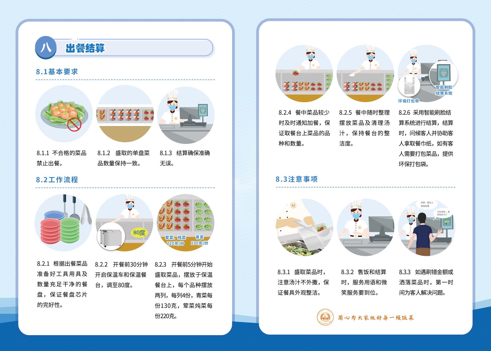 《餐飲服務(wù)操作規(guī)范》(圖解版)是在對(duì)原材料驗(yàn)收、檢測(cè)、入庫(kù)、清洗、加工量化,菜品制作、留樣,出餐結(jié)算,餐具清洗消毒和衛(wèi)生清理等全流程崗位工作標(biāo)準(zhǔn)進(jìn)行了多次現(xiàn)場(chǎng)演練、推敲驗(yàn)證和反復(fù)優(yōu)化完善的基礎(chǔ)上制作的,圖片和漫畫(huà)的使用上也盡可能地貼近工作實(shí)際,是餐飲服務(wù)實(shí)際工作場(chǎng)景和工作步驟的真實(shí)寫(xiě)照。通過(guò)標(biāo)準(zhǔn)漫畫(huà)這種可視化形式,固化和直觀展示餐飲服務(wù)標(biāo)準(zhǔn)流程,為開(kāi)展餐飲服務(wù)標(biāo)準(zhǔn)培訓(xùn)和實(shí)施提供了基本遵循。