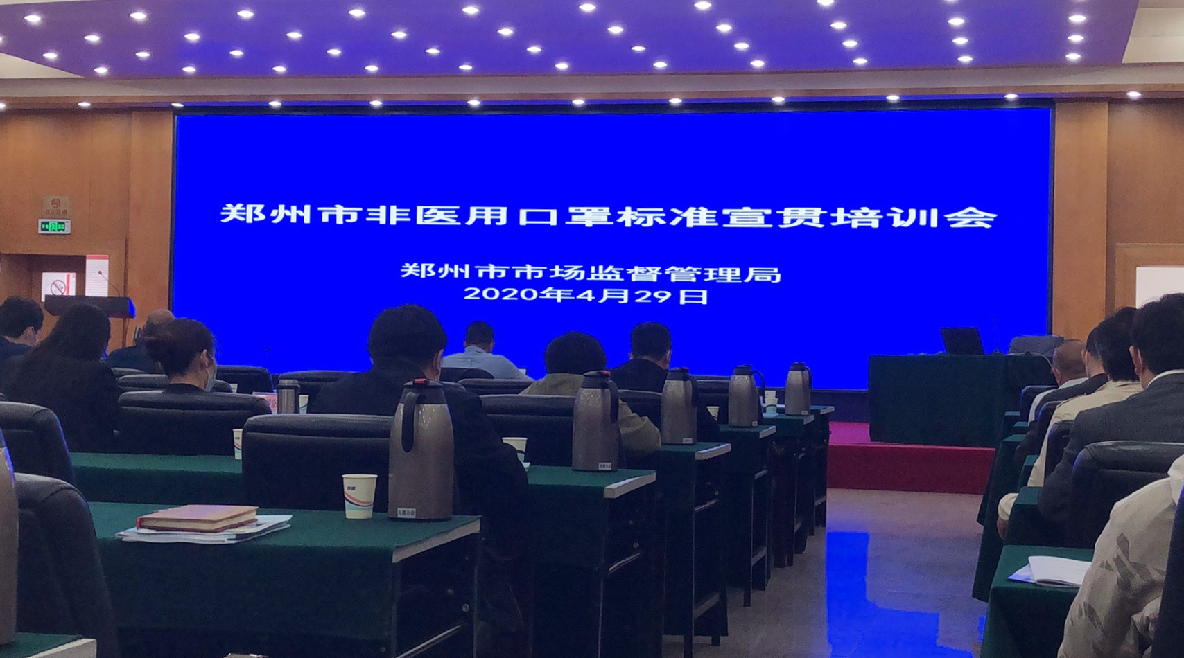 2020年4月29日,鄭州市非醫(yī)用口罩標(biāo)準(zhǔn)宣貫培訓(xùn)會(huì)在鄭州市市場(chǎng)監(jiān)督管理局九樓會(huì)議室召開(kāi)。鄭州市市場(chǎng)監(jiān)督管理局副局長(zhǎng)王擁軍,河南工業(yè)大學(xué)標(biāo)準(zhǔn)化與質(zhì)量檢測(cè)中心主任助理、全國(guó)糧油標(biāo)準(zhǔn)化技術(shù)委員會(huì)糧食儲(chǔ)藏及流通分技術(shù)委員會(huì)副秘書長(zhǎng)陳衛(wèi)東,國(guó)家棉花及紡織服裝產(chǎn)品質(zhì)量監(jiān)督檢驗(yàn)中心副主任憨文軒出席會(huì)議。鄭州市所屬各(市、區(qū))、開(kāi)發(fā)區(qū)市場(chǎng)監(jiān)督管理局標(biāo)準(zhǔn)化科科長(zhǎng),口罩生產(chǎn)企業(yè)負(fù)責(zé)人等參加會(huì)議。會(huì)議由鄭州市市場(chǎng)監(jiān)督管理局標(biāo)準(zhǔn)化處處長(zhǎng)劉彬彬主持。