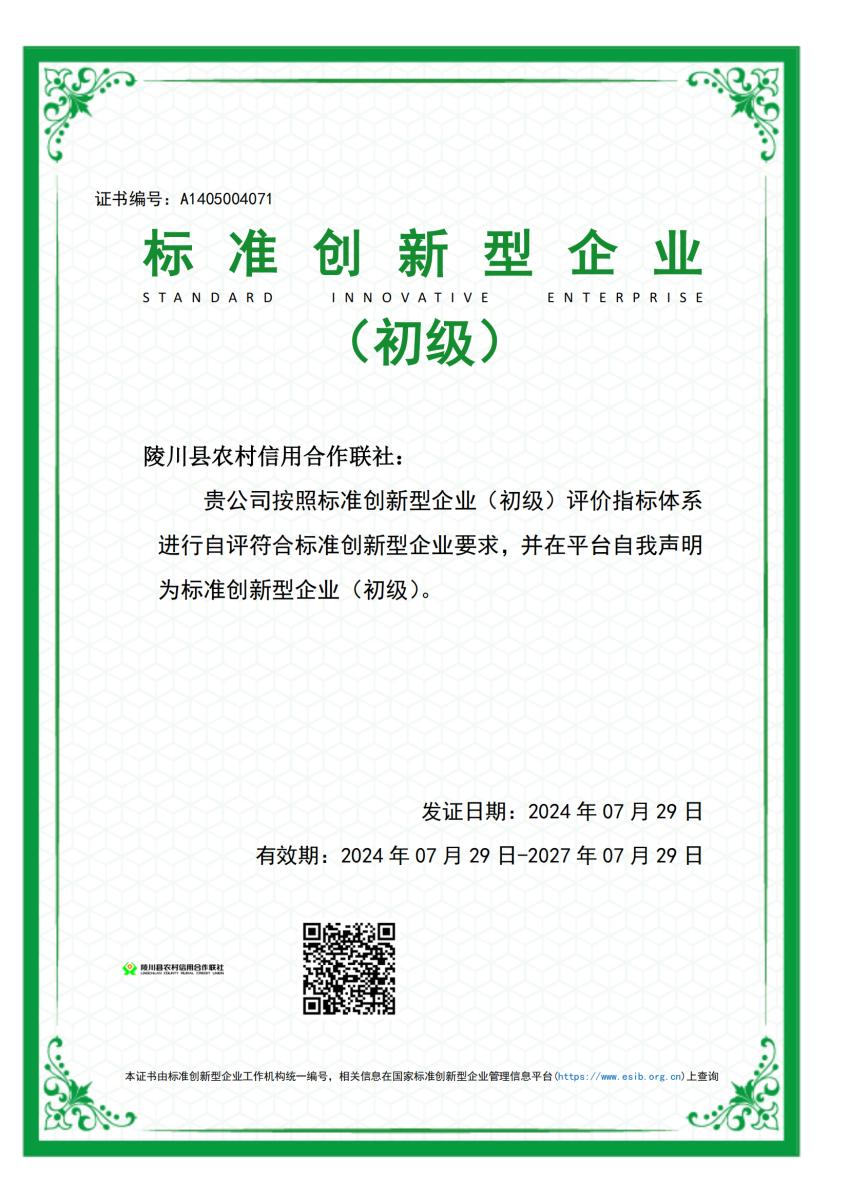 陵川縣農(nóng)村信用合作聯(lián)社獲評(píng)標(biāo)準(zhǔn)創(chuàng)新型企業(yè)
